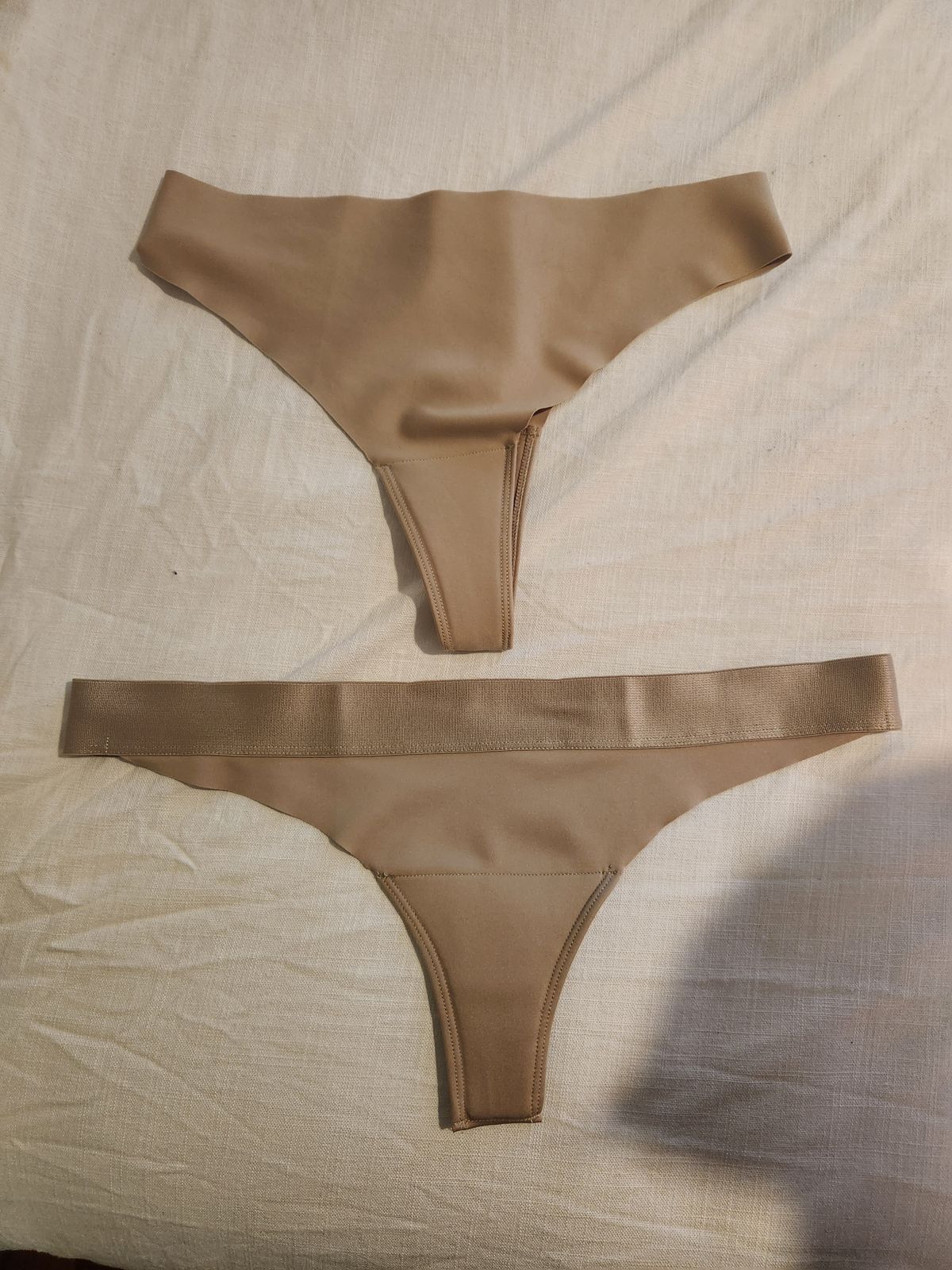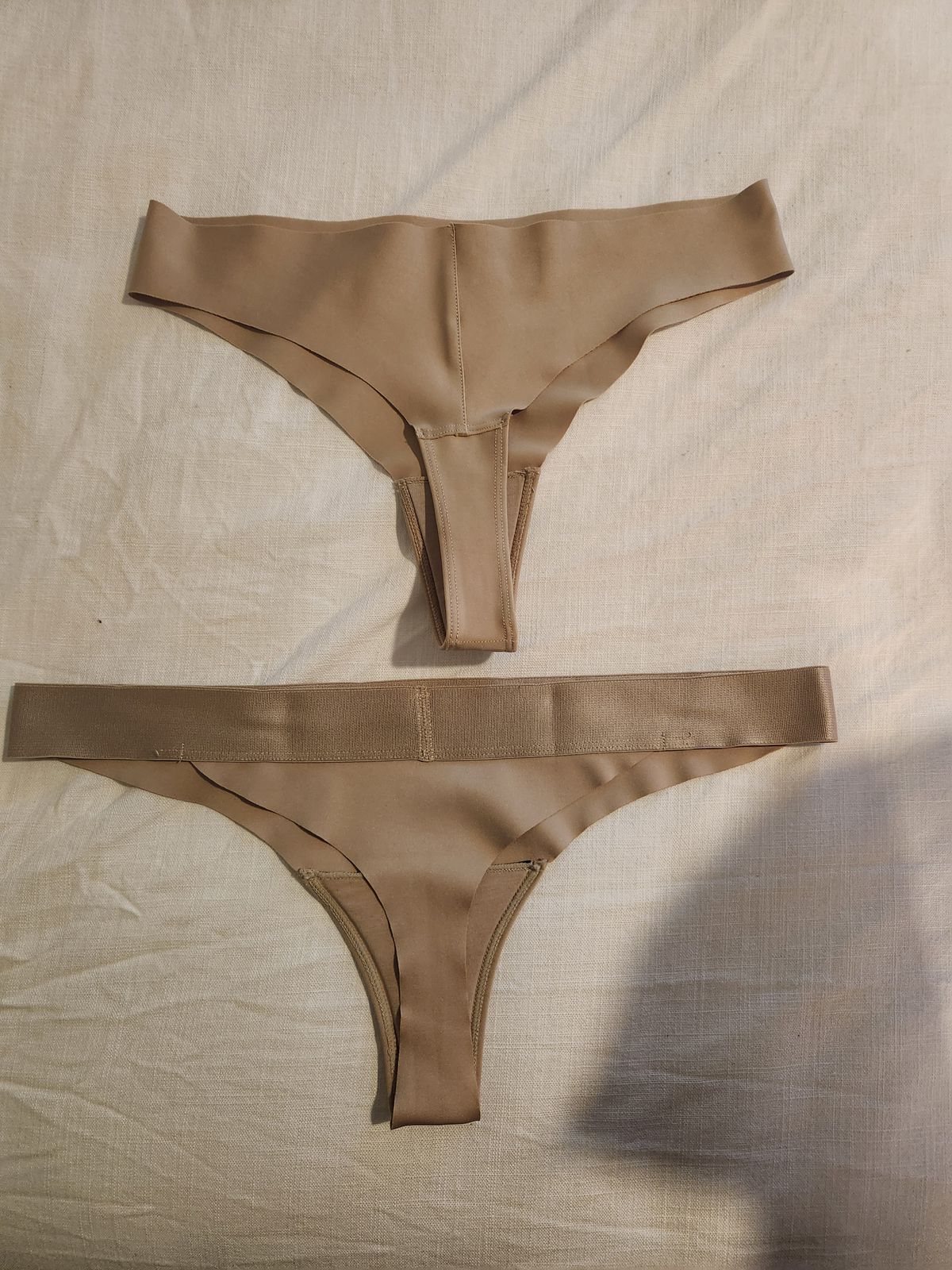 Love these! Smooth and comfortable with thick enough material that is sturdy and doesn't rip or get stretched out. Not sure if anyone else has had this problem, but I find that the laser cut edges of seamless panties usually end up stretching and rolling. Not these! In the photo I attached, the olive green pair is from last year and the orange is brand new. They are made to last! Worth every penny and by far the comfiest underwear I own. Had to buy more so I never have to wear the least favorite undies again.